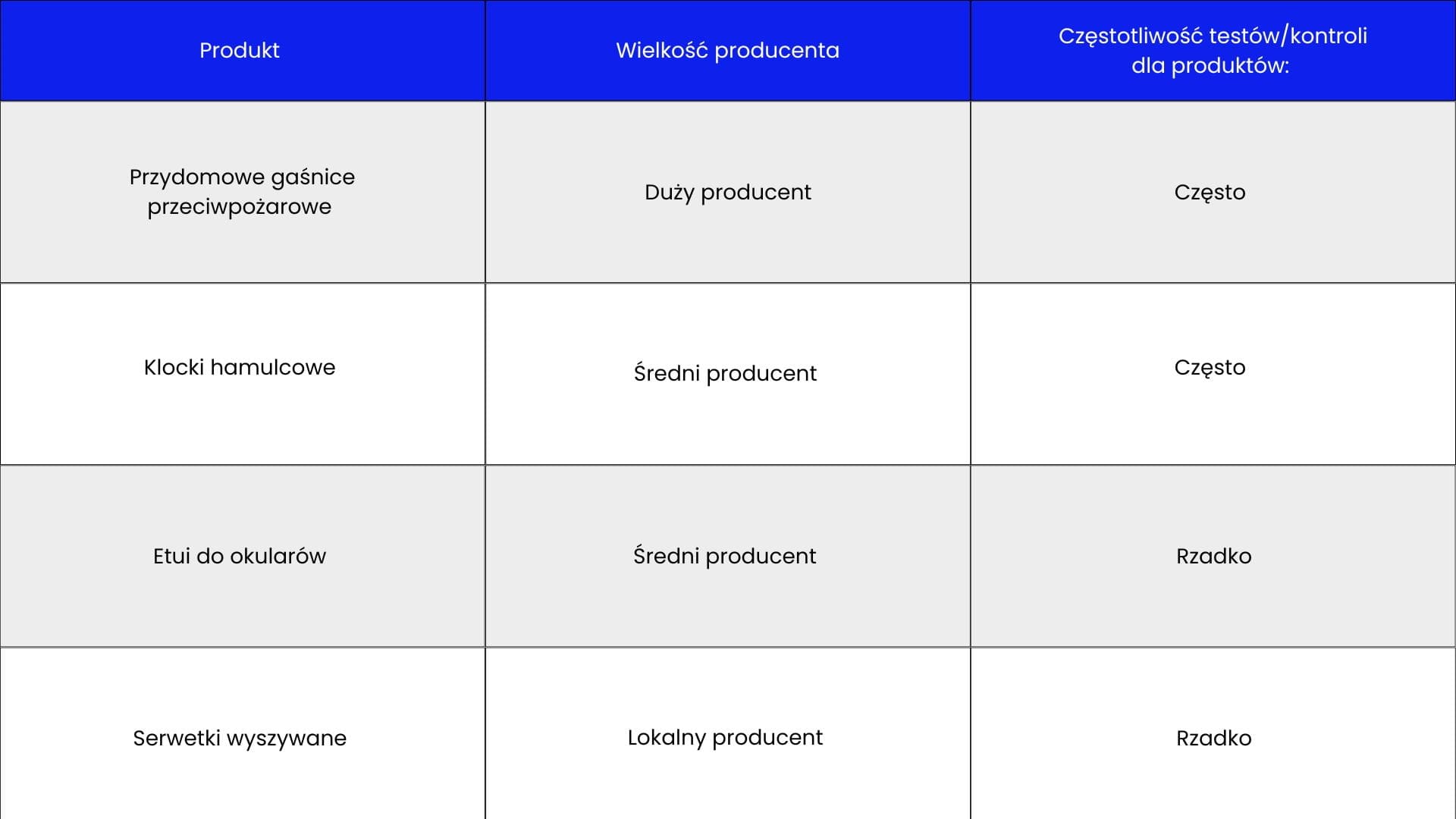 Tabela 5. Zestawienie częstotliwości kontroli oferowanych produktów lub usług